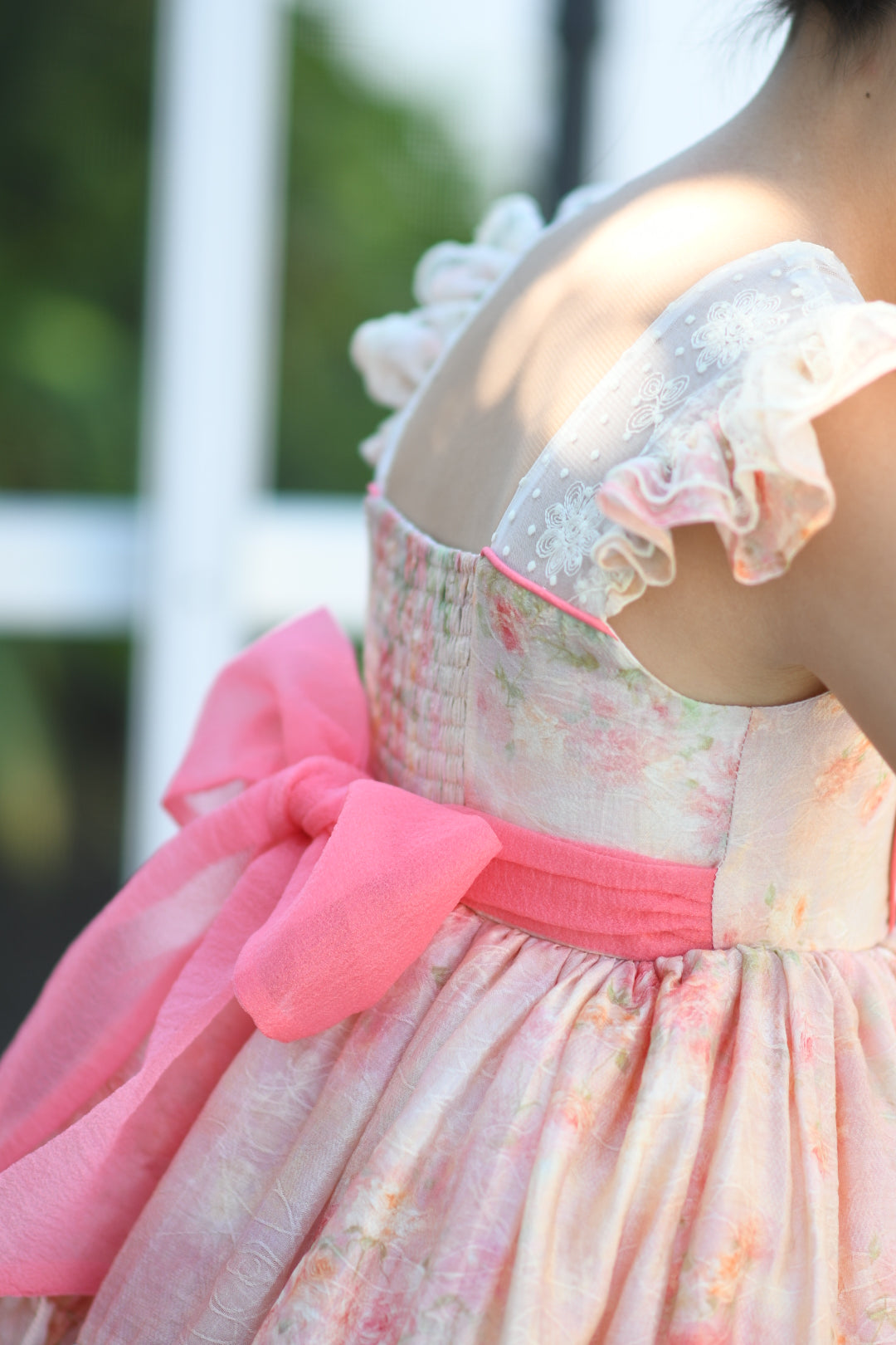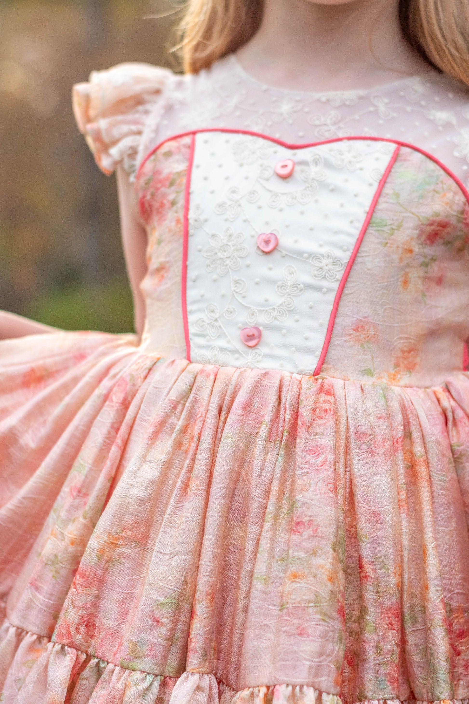 1. Sweetheart inset bodice with heart button details and double flutter sleeves
