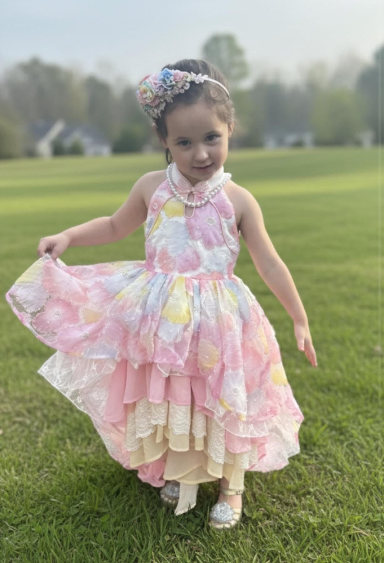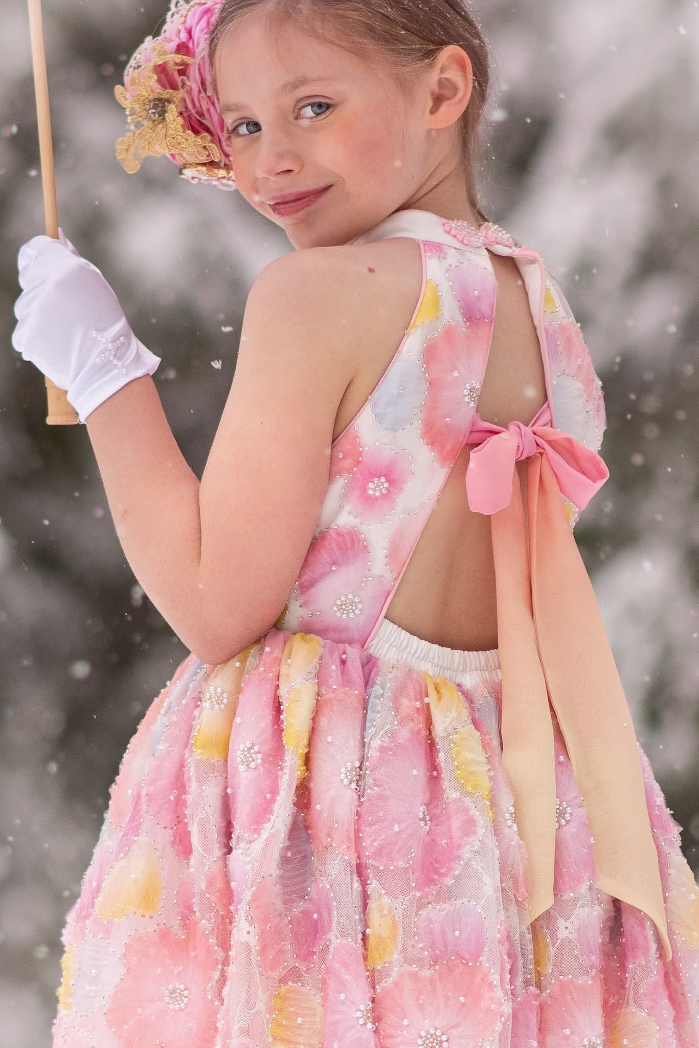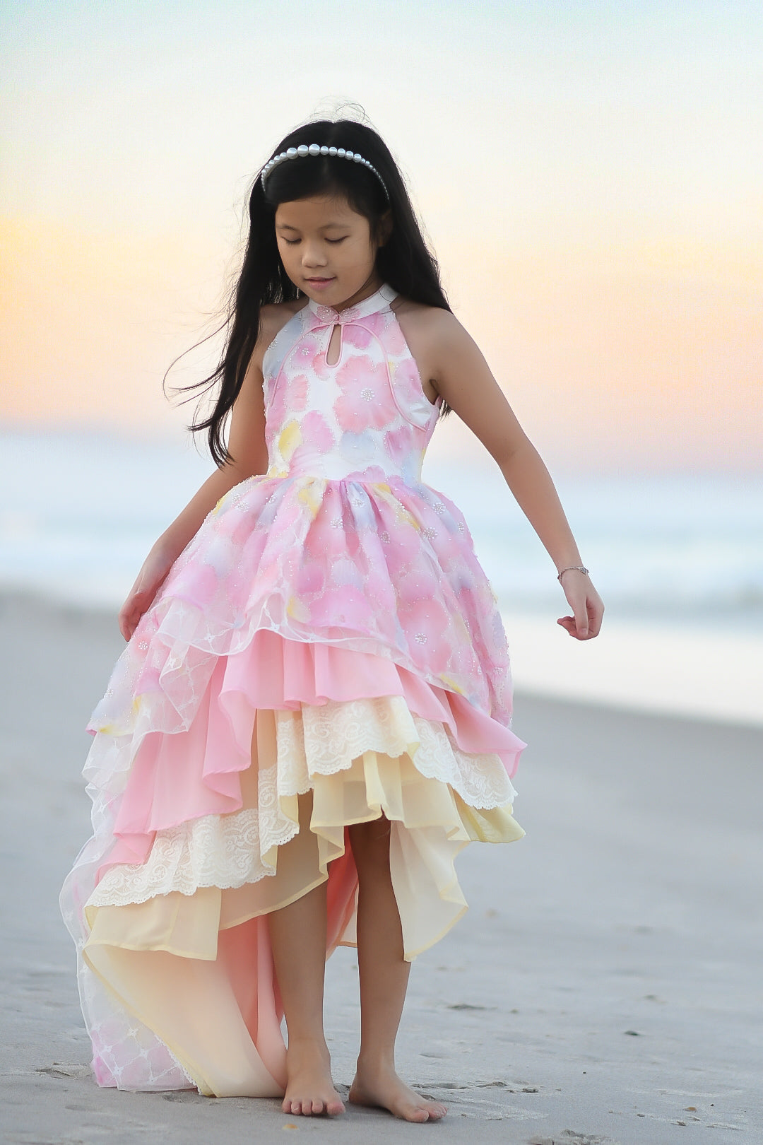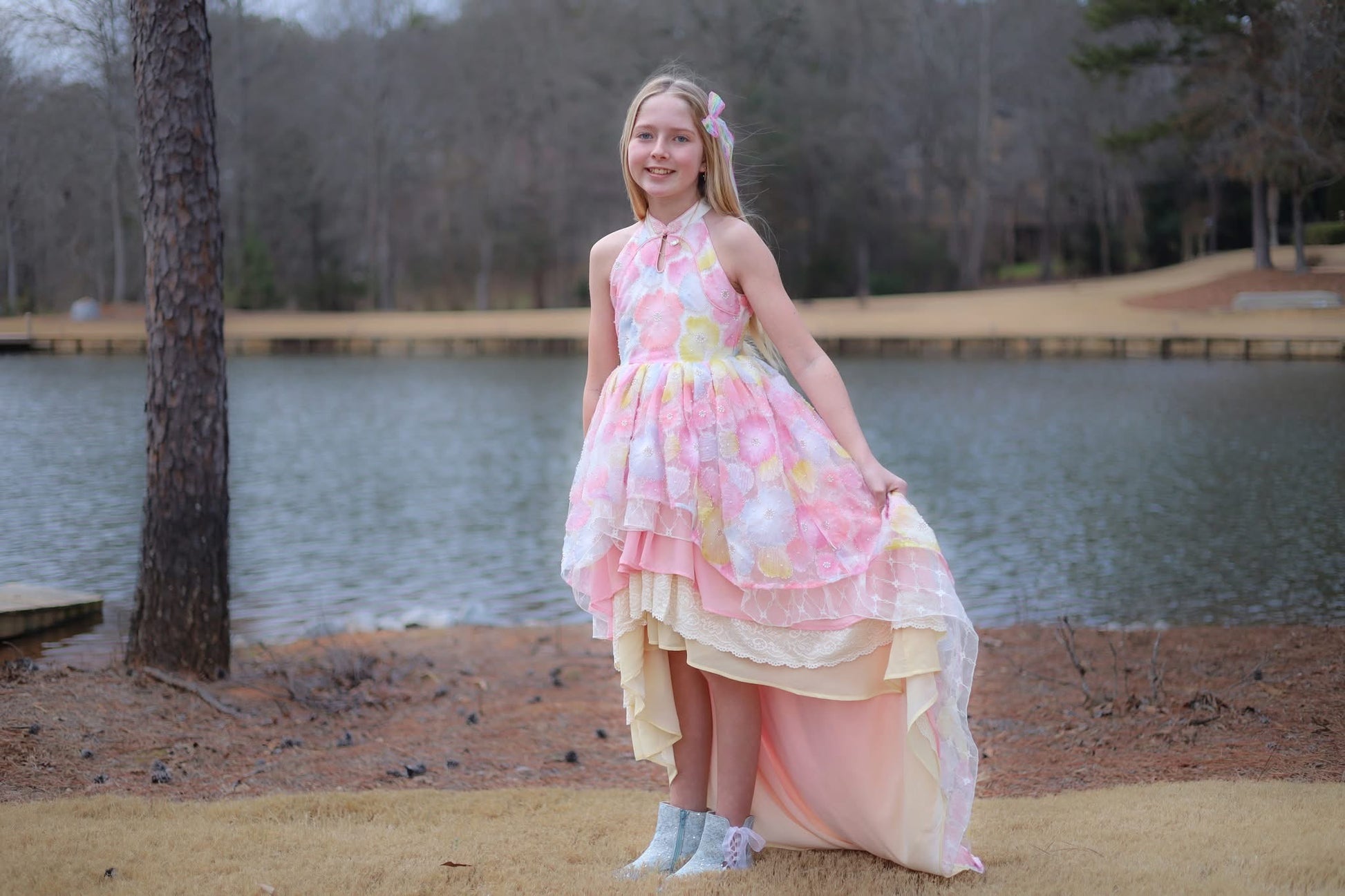 Combining unique original details with our signature hi low design, this 2026 Spring Lucky dress design is a true work of art. A classic halter neckline and open back add a sweet, timeless touch—perfect for spring celebrations, portraits, birthdays, and special moments that call for something unforgettable
