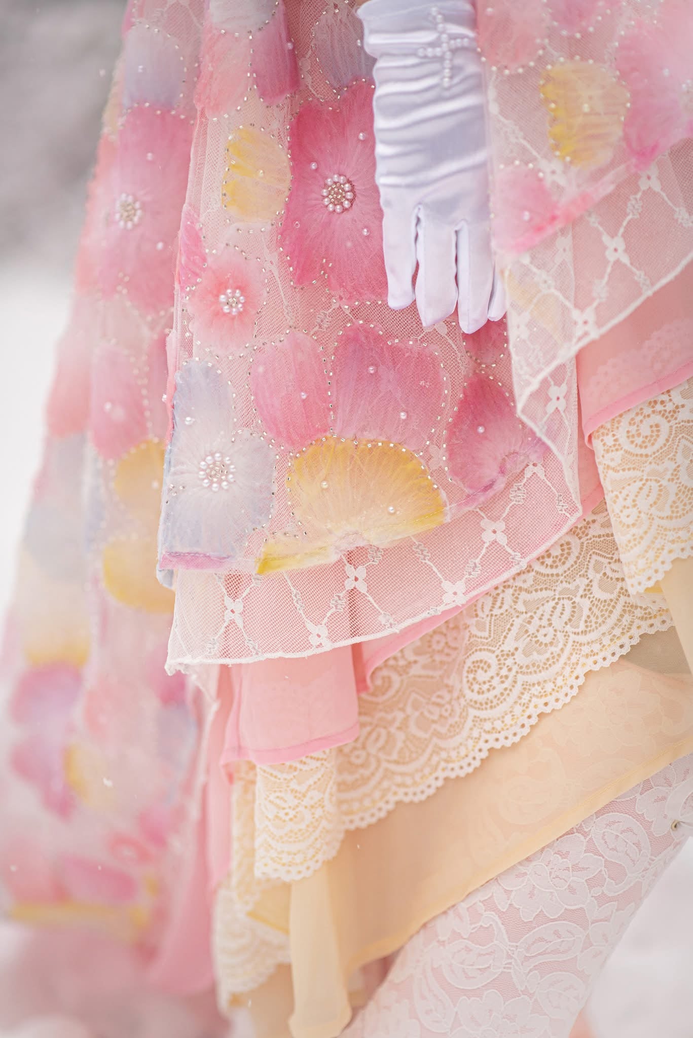 * 5 layers of luxurious premium skirting for maximum fullness in drape including sequined tulle, lace, and chiffon